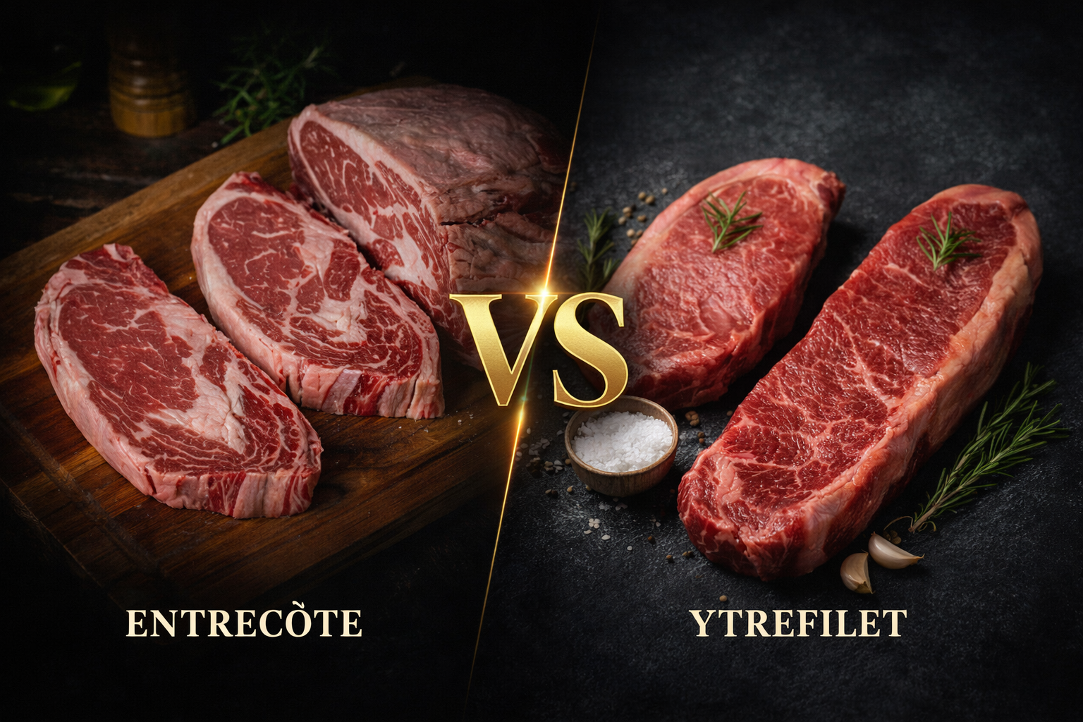Entrecôte (ribeye) eller ytrefilet? De fleste velger det de kjenner igjen – ikke nødvendigvis det som smaker best. Her er den enkle forklaringen på hva som faktisk gir deg den beste biffopplevelsen hjemme.