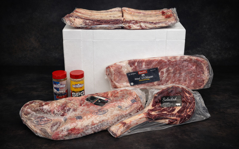 Kassen inneholder blant annet saftig brisket fra Cedar River, kjøttfulle spareribs fra USA, kraftige shortribs fra Irland og en imponerende tomahawk – perfekt som midtpunkt på grillen. I tillegg følger klassiske krydderblandinger som SPG rub og Texas rub, som gir den ekte, amerikanske BBQ-smaken.