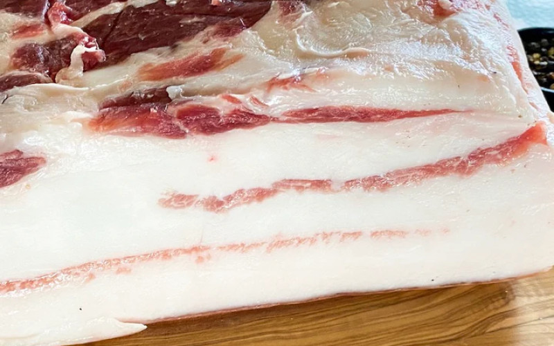 Her snakker vi et stykke med mye marmorering og en intens, nøttepreget smak – et resultat av grisens naturlige diet med eikenøtter. Dette er først og fremst et fettstykke, ikke mye rent kjøtt, men nettopp derfor blir resultatet utrolig saftig og fullt av smak.