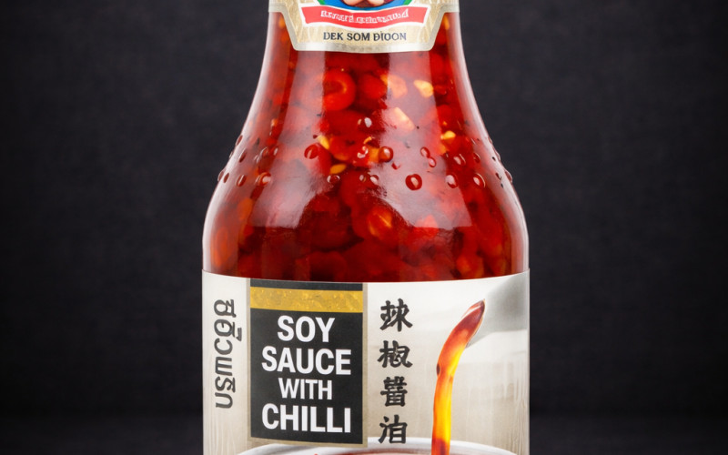 En aromatisk soyasaus med chili som gir både salt, umami og behagelig styrke. Den klare sausen er fylt med biter av chili som gir karakter og varme til rettene.